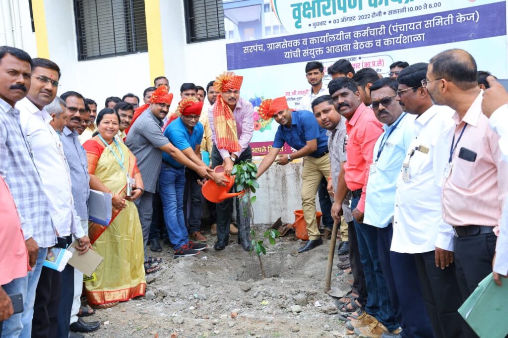 ‘स्वातंत्र्याचा अमृत महोत्सव’ अंतर्गत केज पंचायत समिती कार्यालयात बुधवारी (दि.3) संयुक्त आढावा बैंठक, कार्यशाळा व वृक्षारोपण कार्यक्रम आयोजित करण्यात आला होता. यावेळी अध्यक्षस्थानावरून अजित पवार हे बोलत होते. प्रमुख पाहुणे म्हणून जिल्हा परिषदेचे अतिरिक्त मुख्य कार्यकारी अधिकारी वासुदेव सोळंके यांच्यासह सर्व विभाग प्रमुख, लोकप्रतिनिधी उपस्थित होते.