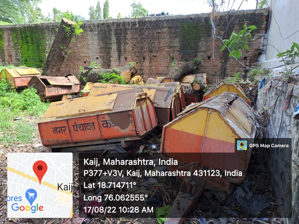 करोडो रुपयांच्या नव्या सतरा लोखंडी कचरापेट्या , रिक्षा , ट्रॅक्टर , अण कचरा विघटन यंत्र धुळखात पडुन