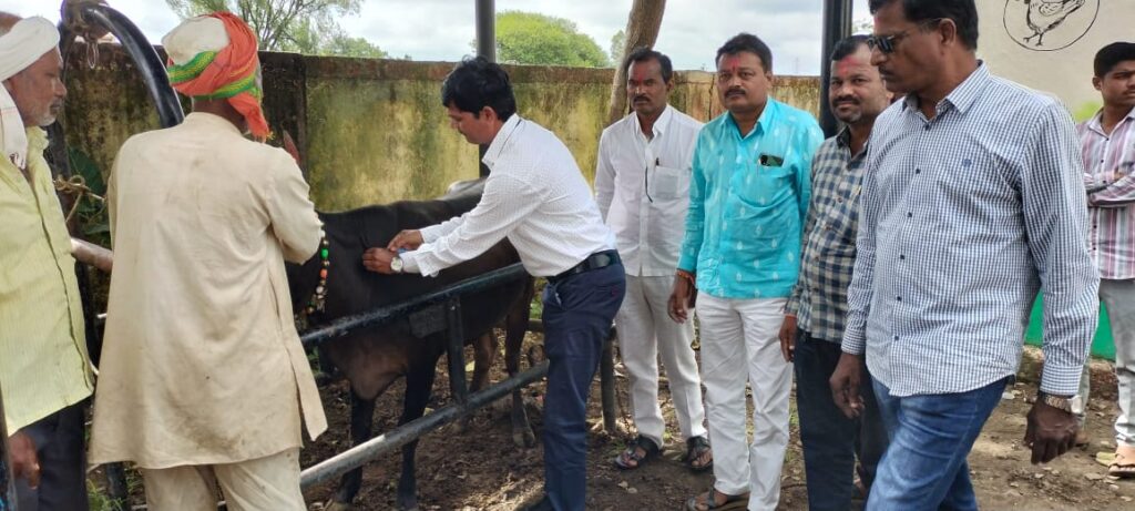 केज तालुक्यातील साळेगांव येथे गोवंशीय पशुंना ग्रामपंचायतच्या वतीने मोफत लम्पी स्किन आजराची प्रतिबंधक लस देण्यात आली.