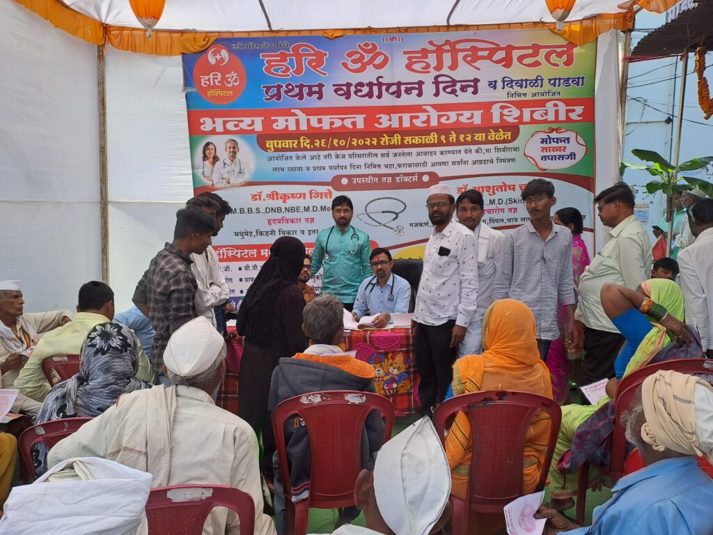 हरि ओम हॉस्पीटल केज च्या प्रथम वर्धापन दिनानिमित्त तथा दिवाळी पाडव्याचे औचित्य साधुन भव्य मोफत आरोग्य शिबीरास मोठ्या प्रमाणात नागरीकांचा, रुग्नांचा प्रतिसाद मिळाला.