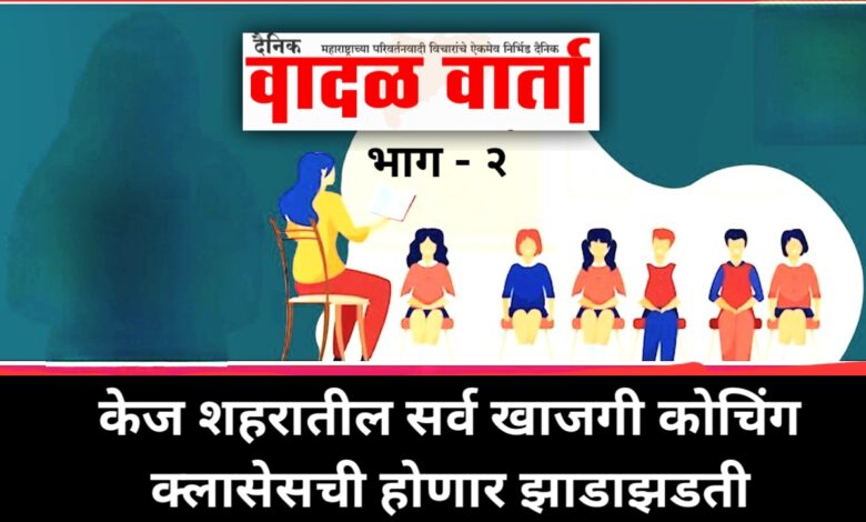 या बाबत वृत असे कि केज शहरात गेल्या काही वर्षांपासून मोठ्या प्रमाणात खाजगी कोचिंग क्लासेस उभारले गेले असून त्यापैकी बरेचसे क्लासेस कोणत्याही अधिकृत परवानगीशिवाय बिनधास्त सुरू आहेत. या क्लासेसमध्ये काही ठिकाणी अगदी १६ वर्षांखालील विद्यार्थ्यांना सुद्धा प्रवेश दिला जात असल्याने नियमांचे सर्रास उल्लंघन होत असल्याचे निदर्शनास आले आहे. त्या अनुषंगाने केज तहसिलदार यांना दैनिक वादळ वार्ताचे संपादक अजय भांगे यानी निवेदन दिले असता तहसिल कार्यालयातून मंडळ अधिकारी तथा ग्रामीण मंडळ अधिकारी यांची समिती स्थापन करून सर्व खाजगी कोचिंग क्लासेसची तपासणी करण्याचे आदेश दिले आहेत. याअंतर्गत तालुक्यातील प्रत्येक कोचिंग क्लासवर कारवाई करण्यात येणार असून त्यांच्याकडील परवानग्या, शिक्षकांचे पात्रता प्रमाणपत्र, इमारतीचे वापर परवाना, अग्निसुरक्षा यंत्रणा , जमा केलेल्या प्रत्येक विद्यार्थ्यांची फीस व त्यांच्या पावत्या अशा सर्व बाबींची तपासणी केली जाणार आहे.
