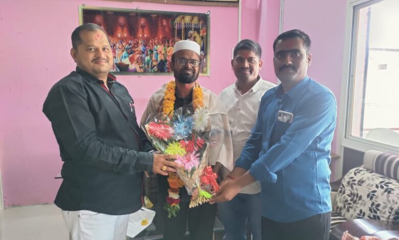 आज केज येथे केजच्या उद्योजक व माजी उपनगराध्यक्ष संदीप अकुंश इंगळे मार्केट यार्ड मध्ये संदीप ट्रेडिंग कंपनी येथे खतीब मुबाशीर यांची डिजिटल मीडिया पत्रकार संघ च्या कोषाध्यक्ष पदी निवड झाल्याबद्दल संदीप ट्रेडिंग कंपनी येथे सत्कार करण्यात आला यावेळी शैलेश राजाभाऊ राऊत, भैरवनाथ बोबडे ,राहुल नकाते , गणेश शिंदे उपस्थित राहुन खतीब मुबशीर यांना पुढील कार्यासाठी शुभेच्छा दिल्या .