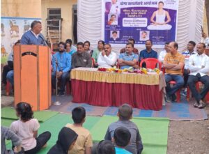 यानंतर योग शिक्षीका जयश्री गुंड यांनी योगाचे विद्यार्थ्यासमवेत प्रात्यक्षिक करून दाखवले कार्यक्रमाचे प्रस्ताविक क्रिडा संयोजक विनोद गुंड यानी केले तसेच डॉ. नेहरकर , अंकुशराव इंगळे ,मस्के सर यांनी मार्गदर्शन केले तर अध्यक्षीय समारोप राहुल देशमुख यांनी केले.