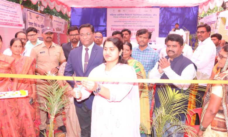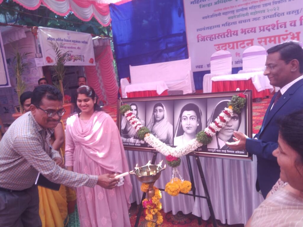 महिला आर्थिक विकास महामंडळ (माविम) बीड अंतर्गत नवतेजस्विनी महाराष्ट्र ग्रामीण महिला उद्यम विकास प्रकल्पाच्या अमलबजावणीसाठी दि. २५ ते २७ मार्च २०२३ पर्यंत “नवतेजस्विनी महोत्सव २०२३” अंतर्गत स्वयंसहाय्य महिला बचतगट उत्पादित वस्तू/मालाचे विक्री-प्रदर्शन चे उद्घाटन जिल्हाधिकारी मा.दिपा मुधोळ मुंडे यांच्या हस्ते झाले. यावेळी प्रमूख अतिथी म्हणून मा न्यायाधीश सिद्धार्थ गोडबोले उपस्थित होते.