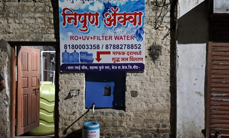 या बाबत सविस्तर वृत असे कि केज शहरात प्रथमच निपुण बहुउद्देशीय सेवाभावी संस्थेचे अध्यक्ष निहार धनराज भालेराव यांच्या माध्यमातुन केज शहरामध्ये प्रथमच क्वाईन बॉक्स च्या माध्यमातुन माफक दरामध्ये शुद्ध आणी थंड पाणी अगदी पाच रुपयांच्या शुल्कामध्ये दहा लिटर पाणी माता रमाई चौक फुलेनगर केज येथे उपलब्ध झाले आहे.