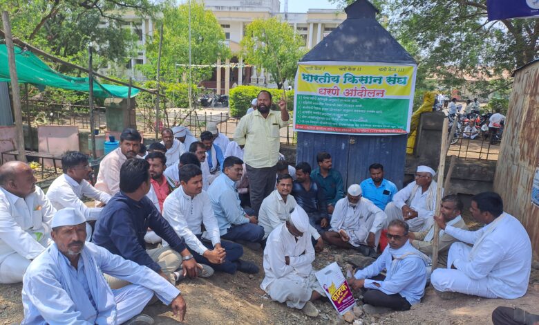 केज तालुक्यात दिनांक 08/04/2023 रोजी प्रचंड मोठी गारपिठ झाल्यामुळे अनेक शेतकऱ्यांची मोठे अधिक नुकसान झाले आहे. बळीराजा आर्थिक संकटात सापडला आहे म्हणून भारतीय किसान संघ यांच्या वतीने तहसिल कार्यालया समोर अनेक शेतकरी प्रमुख मागण्या घेऊन धरणे अंदोलन करत आहे . यावेळी शेतकऱ्याच्या प्रमुख मागण्या कि छत्रपती शिवाजी महाराज शेतकरी सन्मान योजना अंतर्गत 1.50,000/- एक लाख पन्नास हजार रुपये अनेक पात्र शेतकऱ्यांना मिळणे बाकी आहे. महात्मा जोत्यीराव फुले शेतकरी कर्ज मुक्ती योजना 2019 अंतर्गत जे शेतकरी नियमीत कर्जफेड करतात त्यांना 50,000/- पंन्नास हजार रुपये प्रोत्साहन अनुदान जाहिर केले होते परंतू त्यातील बरेच शेतकरी वंचित राहिले आहेत तसेच याच योजनेत ज्या शेतकन्यांकडे 2,00,000/- दोन लाख कर्ज आहे.