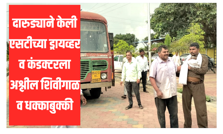 केज येथे एका दारुड्या इसमाने एसटीच्या ड्रायव्हर व कंडक्टरला शिवीगाळ व धक्काबुक्की केली.
