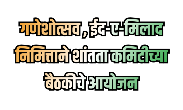 गणेशोत्सव ईद-ए-मिलाद निमित्ताने शांतता कमिटी बैठकीचे आयोजन दिनांक.15/09/2023 रोजी 11.00 वा.पोलीस स्टेशन केज येथे केले आहे.
